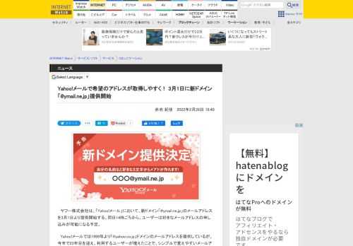 Yahoo!メールで希望のアドレスが取得しやすく! 3月1日に新ドメイン「@ymail.ne.jp」提供開始 - INTERNET Watch