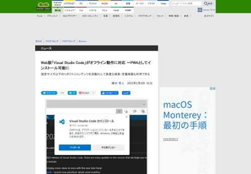 Web版「Visual Studio Code」がオフライン動作に対応 ~PWAとしてインストール可能に - 窓の杜