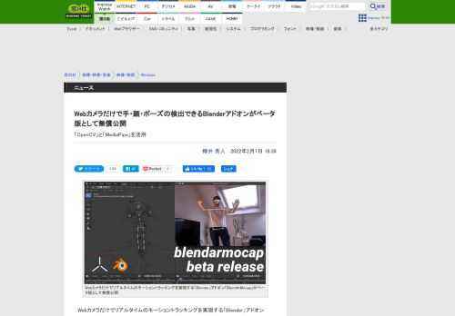 Webカメラだけで手・顔・ポーズの検出できるBlenderアドオンがベータ版として無償公開 - 窓の杜